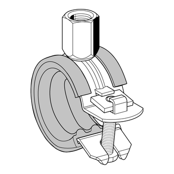 One-piece pipe clamp with double threaded nut with thread connection M8 or M10 for pipes for M&E services. For soundproof wall, floor and ceiling installation (as per DIN 4109). With time-saving quick-set clip.