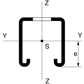 | Type B/H/s [mm] | Cross section A [cm2 ] | Distance e [cm] | Max. point carrying capacity Fmax (traction) [kN] | perm. torsional moment Mq [Nm] |