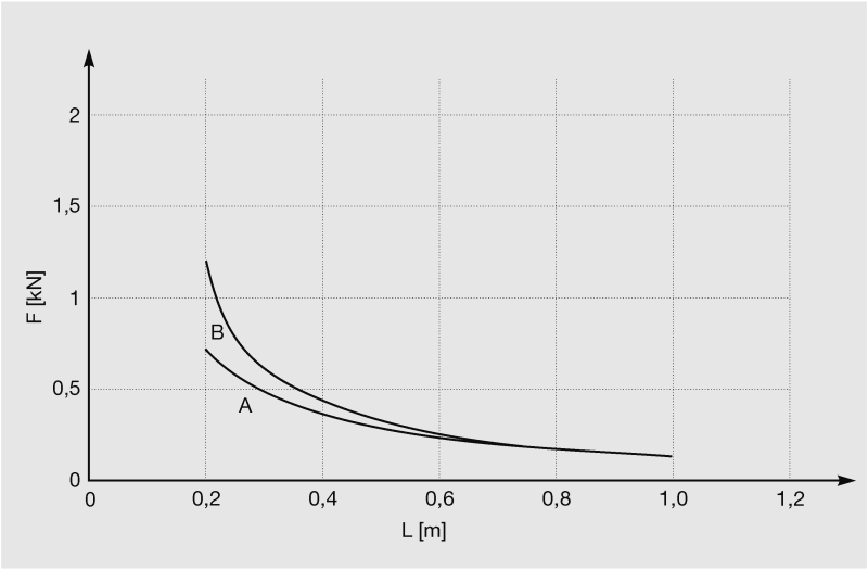 Load chart applicable in combination with Channel 41/41/2.5 D or 41/45/2.5 D