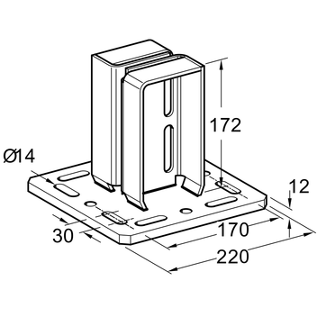 In combinatie met de draagconsole TKO 120 maakt de montage-adapter STA 120 het vervaardigen van traversen en andere constructies tussen constructiedelen of staalconstructies mogelijk. Door de slobgaten kunnen afwijkingen tot 50 mm worden gecompenseerd.